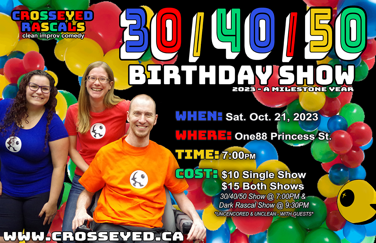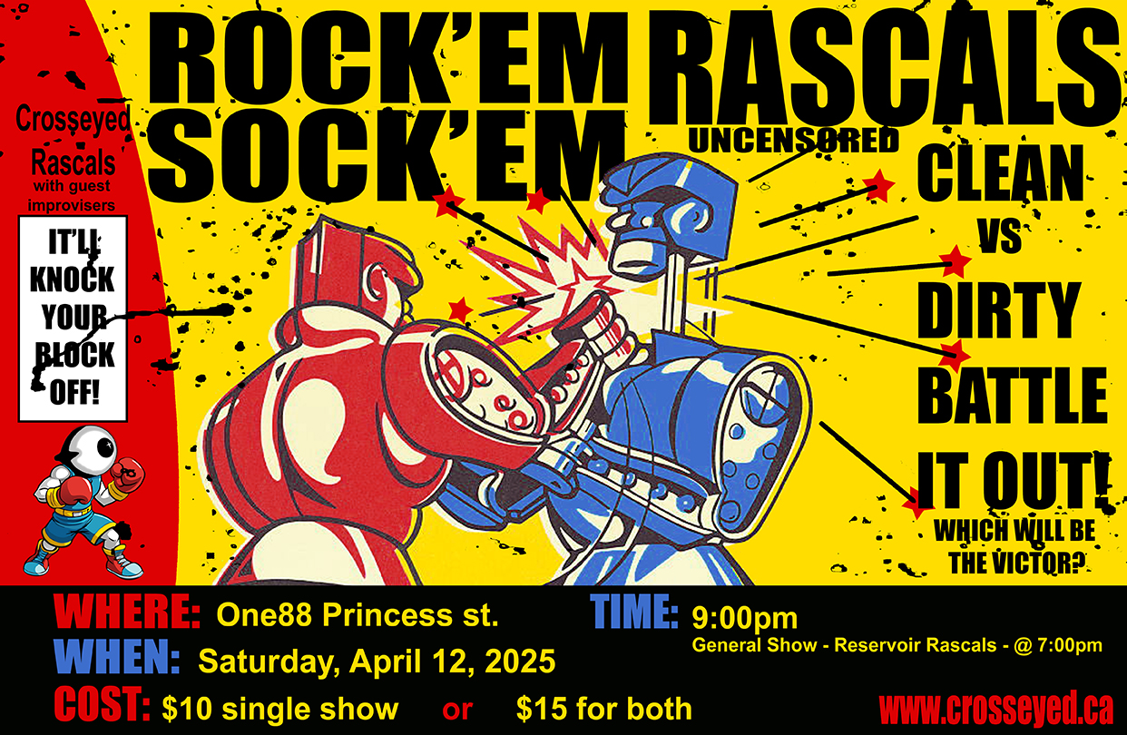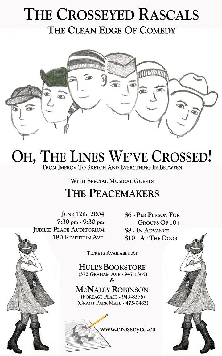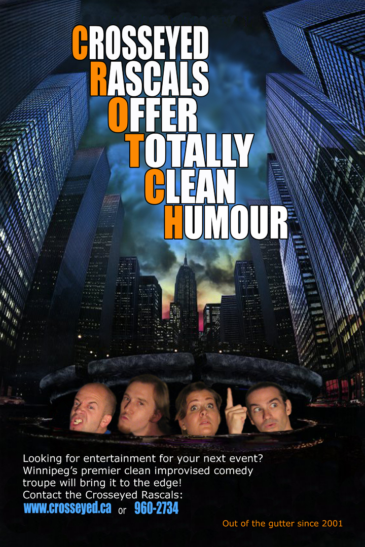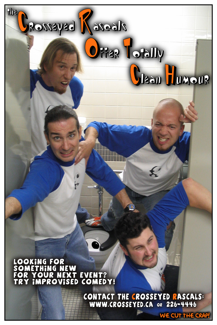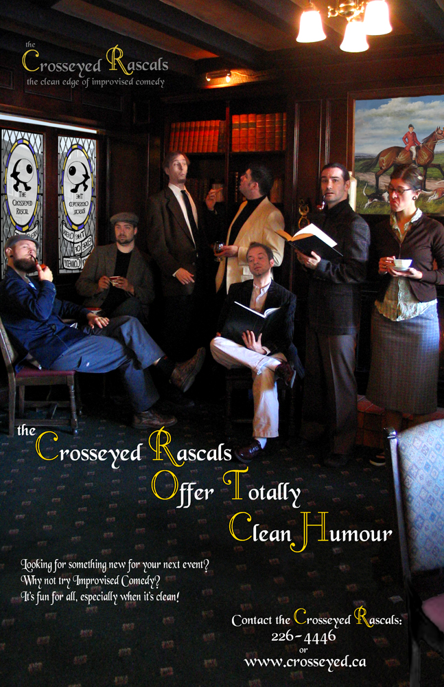 Since forming, the Crosseyed Rascals have committed themselves to clean comedy, which means no innuendoes, no profanity, no nudity, no harmful stereotypes. The Crosseyed Rascals work hard to ensure that each and every show is a safe environment to have some good, clean, wholesome fun, but we have been known to skirt the edge from time to time.